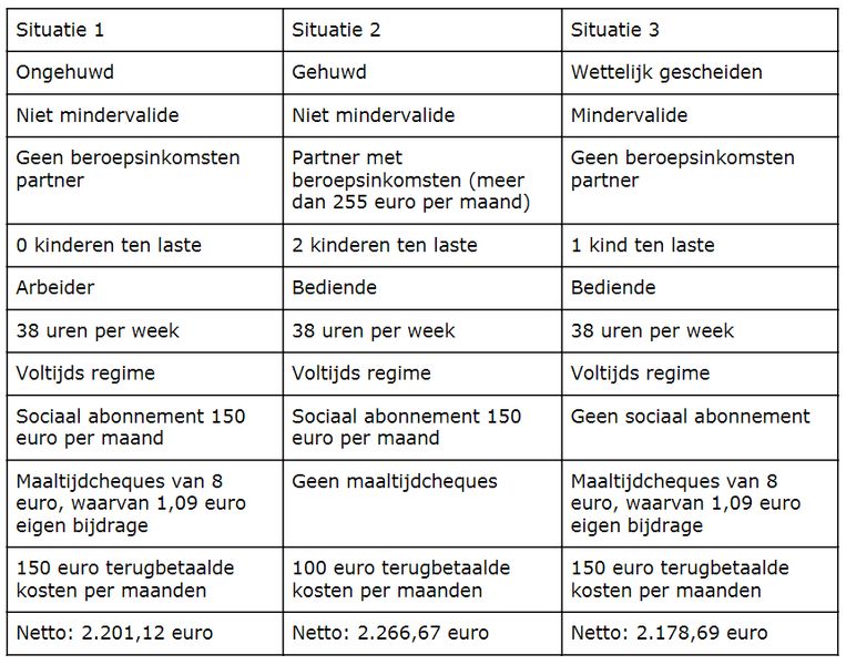 Met deze tool ben je gewapend om vlot omzettingen tussen netto en bruto lonen te maken. Deze berekening houdt rekening met het beroep en de burgerlijke stand van de werknemer, het inkomen van de echtgeno(o)t(e) indien van toepassing, de betaalperiode van het loon , de personen ten laste , fietsvergoeding, pensioenbijdrage, firmawagen, maaltijdcheques en tenslotte de. Netto-bestaansmiddelen berekenen. Het bedrag van de netto-bestaansmiddelen stemt niet overeen met wat men netto uitbetaald krijgt! Mindervaliden gelden voor twee ten laste.